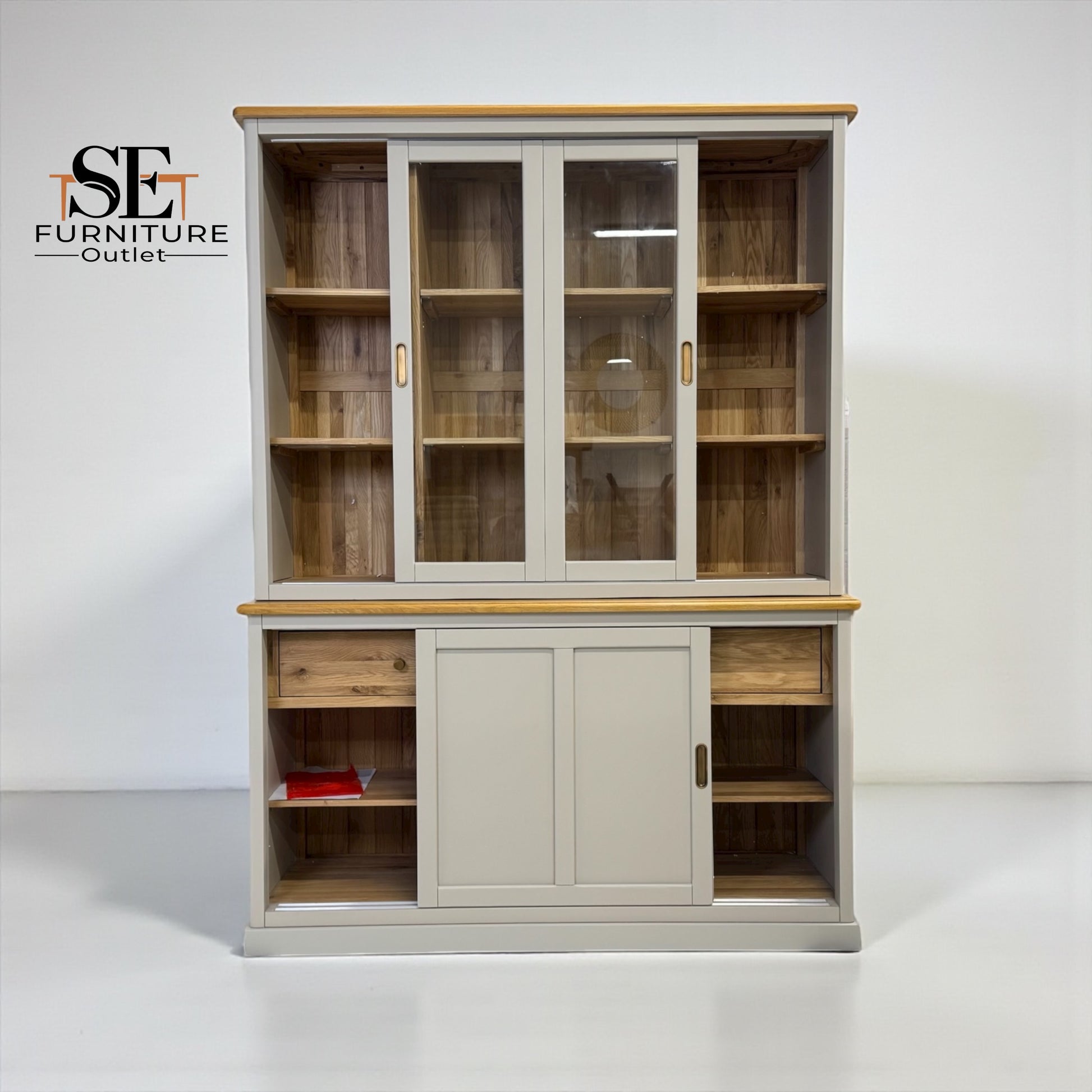 It consists of two solid pieces. Simply place the top section on the sideboard and use the provided fixings to secure them together. Instructions are not included.